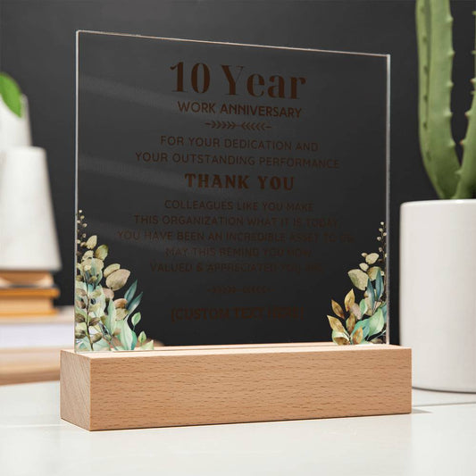 10 YEAR Work Acrylic Plaque with LED Lamp Option
